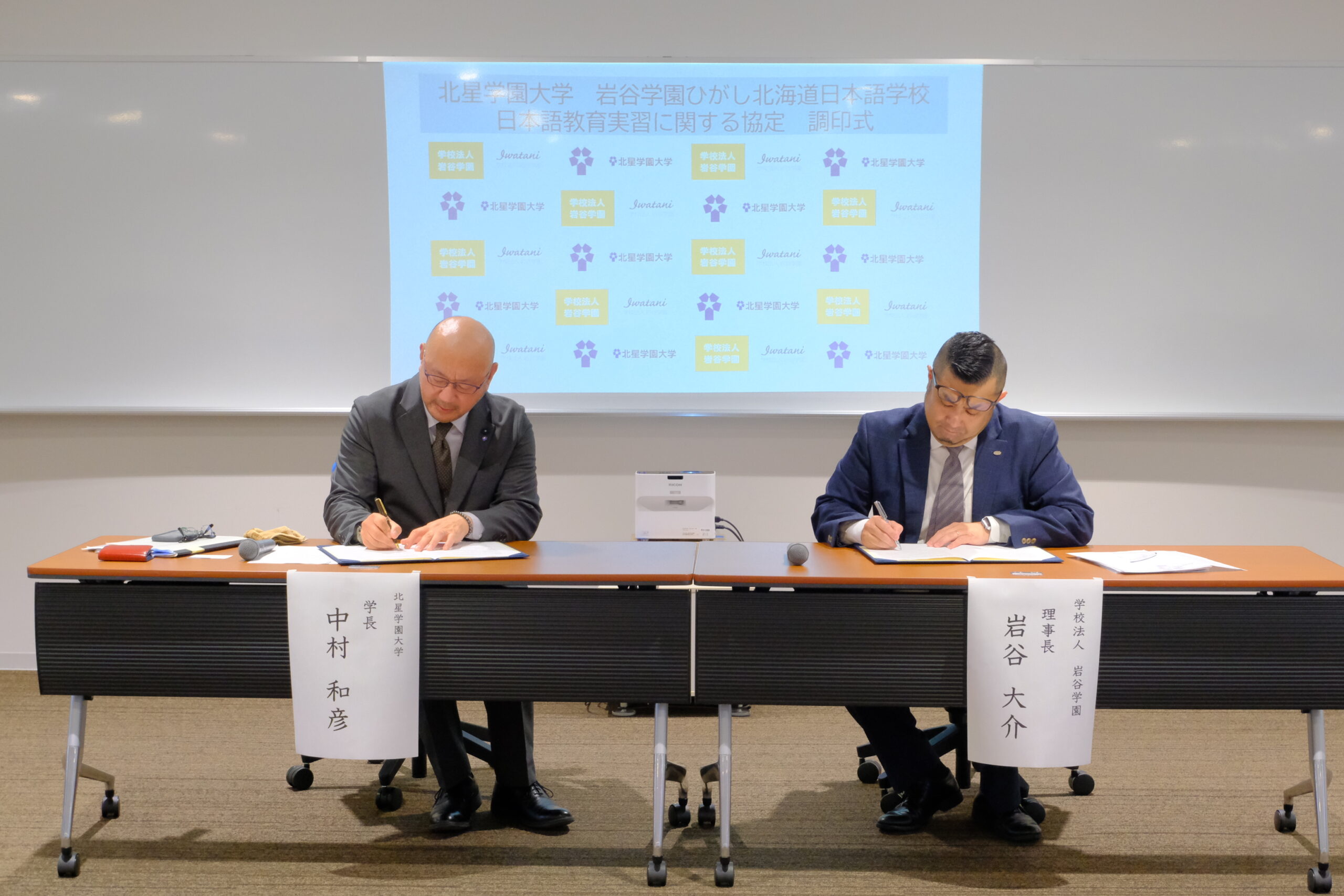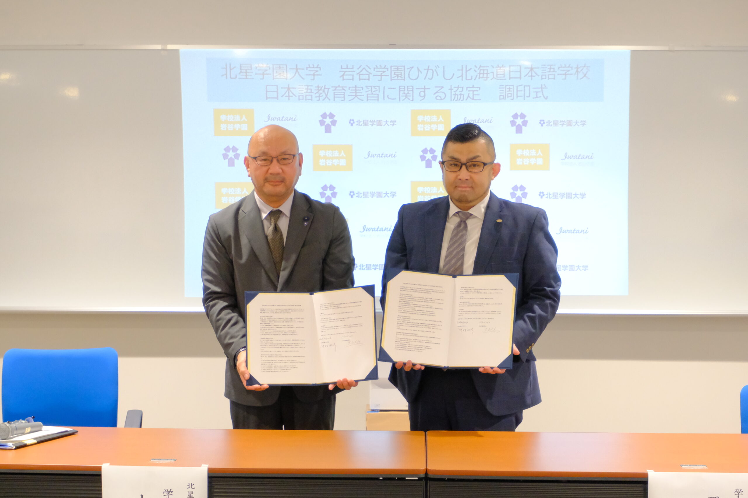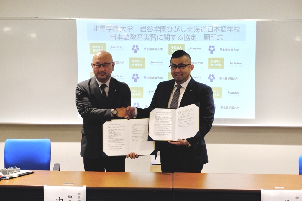 岩谷学園ひがし北海道日本語学校と北星学園大学は教育実習に関する協定を締結し、6月6日(金)15時より本学にて調印式を執り行いました。