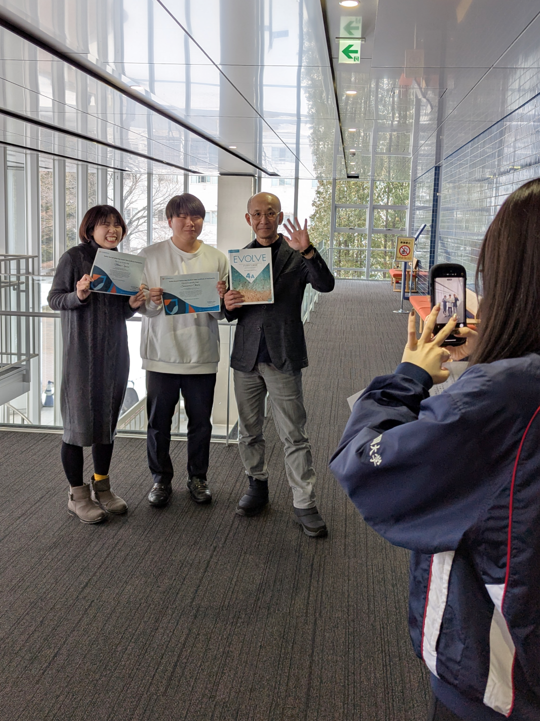 Cambridge University Press が出版している教科書『EVOLVE4(CEFR B1+)』(白鳥金吾先生担当の短英2年生選択科目「英語教育入門」で使用!) の最新版(第二版)の出版に合わせ、全世界の学習者の中から、北星学園大学短期大学部英文学科のこちらの2名(2025年3月卒業)が、インタビュー動画出演者として選ばれました。さらに、この教科書のプロモーションビデオへの出演依頼もきており、4月以降に収録が予定されているそうです。短英から、また、有名人の誕生です!