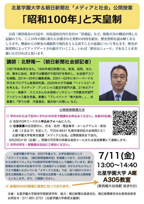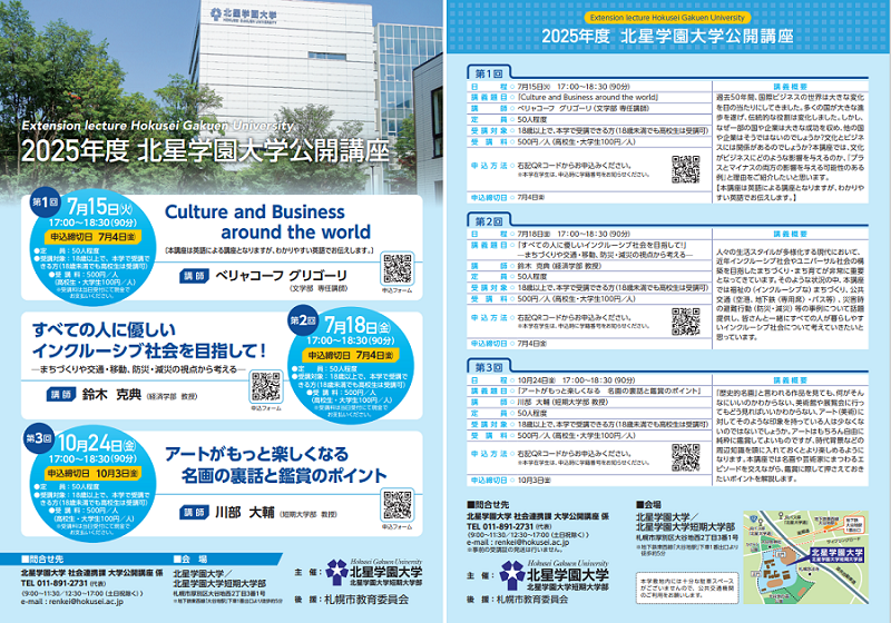 - 2025年度北星学園大学公開講座のお知らせ2025.06.11