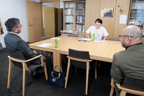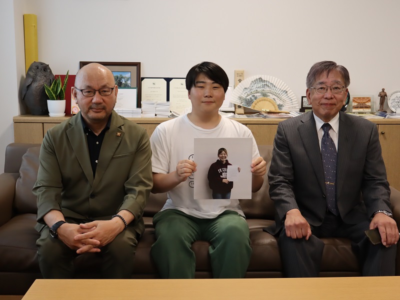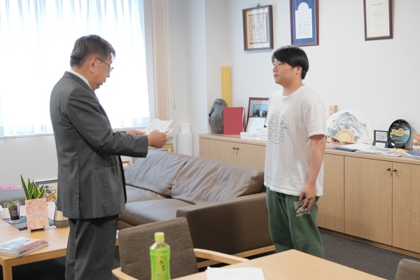 6月18日(水)、本学学長室にて「同窓会奨励金授与式」を行い、今年度採用された奨励生2名に奨励金を授与しました。