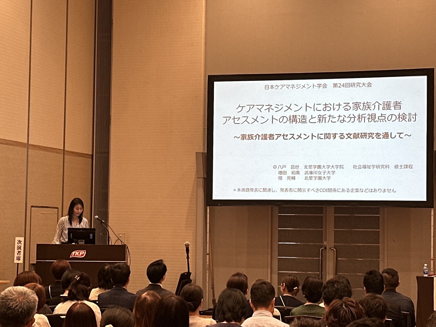社会福祉学研究科社会福祉学専攻修士課程2年 八戸さんが日本ケアマネジメント学会第24回研究大会にて、修士論文研究の中の「文献研究」を発表し、優秀賞を受賞しました。