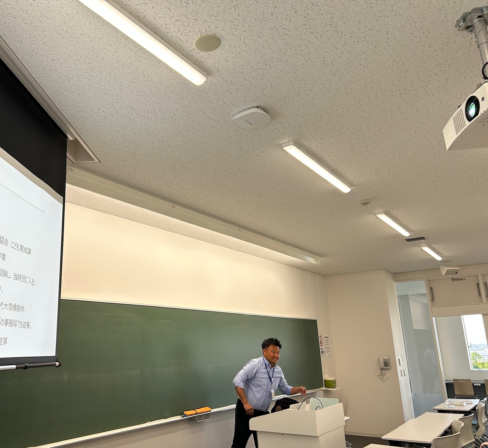 教育系には児童会館とフリースクールがありますが、教育系(児童会館)では事前学習の一環として5/26(月)に札幌市の児童会館を所管する公益財団法人さっぽろ青少年女性活動協会から矢野係長を授業にお招きし、児童会館の歴史や役割、そして夏休みに80時間の実習を行う学生達が心に留める心構えなど、大変有意義な話を伺いました。