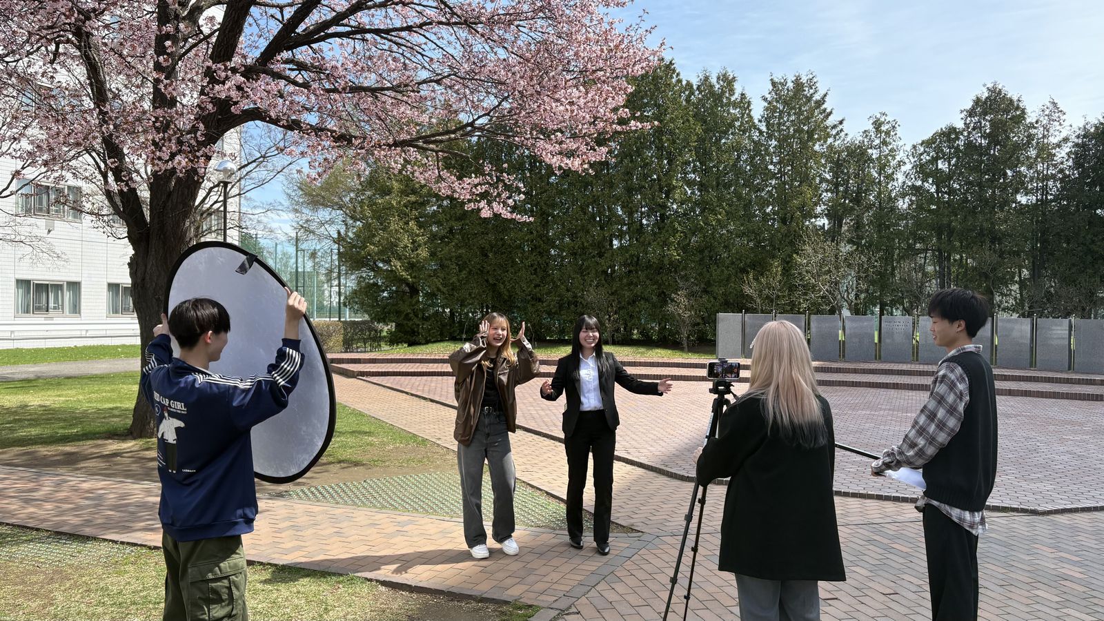 4月にカメラワークの基本を学び、大学の施設を紹介するという想定で撮影の練習をしました。