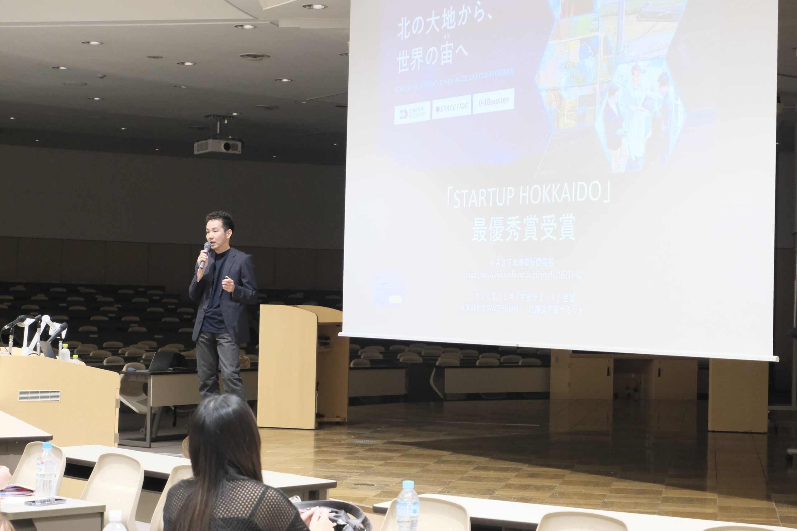 7月9日(水)に行われた札幌ガーデンパレスでの表彰式では代表の学生3名が登壇、受賞に際し「現代的な、ライブ感覚の訴求力に優れた作品。構図作り、動的な編集が秀逸。インタビューで農業者の本音をよく引き出していた。カメラワークの技術も学生とは思えないレベルで安定している」との高い講評をいただきました。