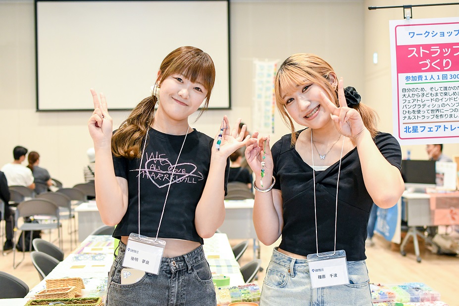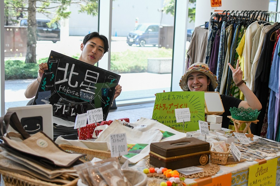 本学をはじめ、札幌学院大学、北海学園大学、札幌大谷大学の計4校から総勢60名の学生たちが参加し、本学公認サークルの「北星フェアトレード」が物販ブースの出展とワークショップ、経済学部「演習I」と「フェアトレード」の履修者は課外実習としてミニ・インターンやワークショップスタッフとしてイベント運営に携わることで数多くの学びを得ることができました。