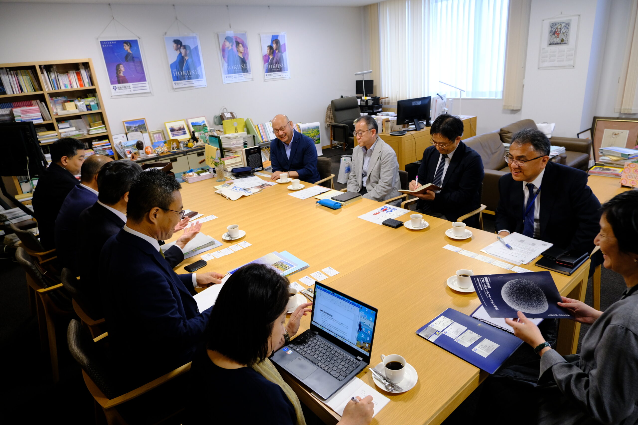 青年海外協力隊事務局などを担当されているJICAの小林広幸理事、JICA北海道(札幌)の中川岳春所長、国内事業部の高嶋清史次長、青年海外協力隊事務局社会連携促進課の磯貝白日参事役、JICA北海道(札幌)の佐々木美穂次長が北星学園大学にお越しになりました。北星学園大学はJICA北海道(札幌)に非常に近い場所に位置しており、これまでに51名の卒業生が青年海外協力隊として派遣された実績があります。今後の更なる協力・連携に向けて、大学全体で検討していくための様々な情報交換・意見交換となりました。