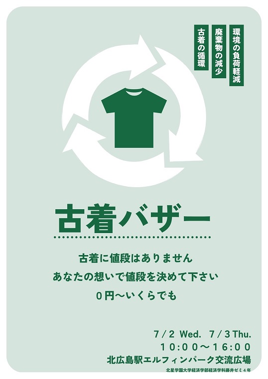 経済学部 藤井ゼミ4年 古着回収班が古着バザーを開催します。