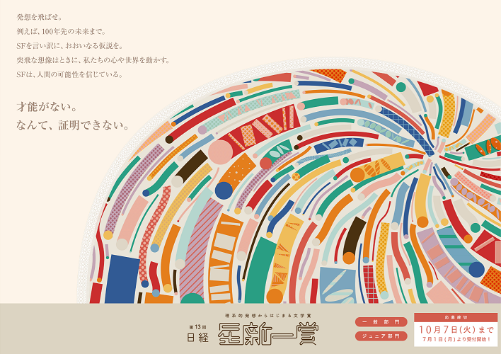 星氏の圧倒的な想像力よって創作された「理系文学」を土俵に、理系的アイデアとその先にある物語を競う賞として、一般部門、ジュニア部門に分けて募集されているほか、人間以外(人工知能等)からの応募も受け付けしています。